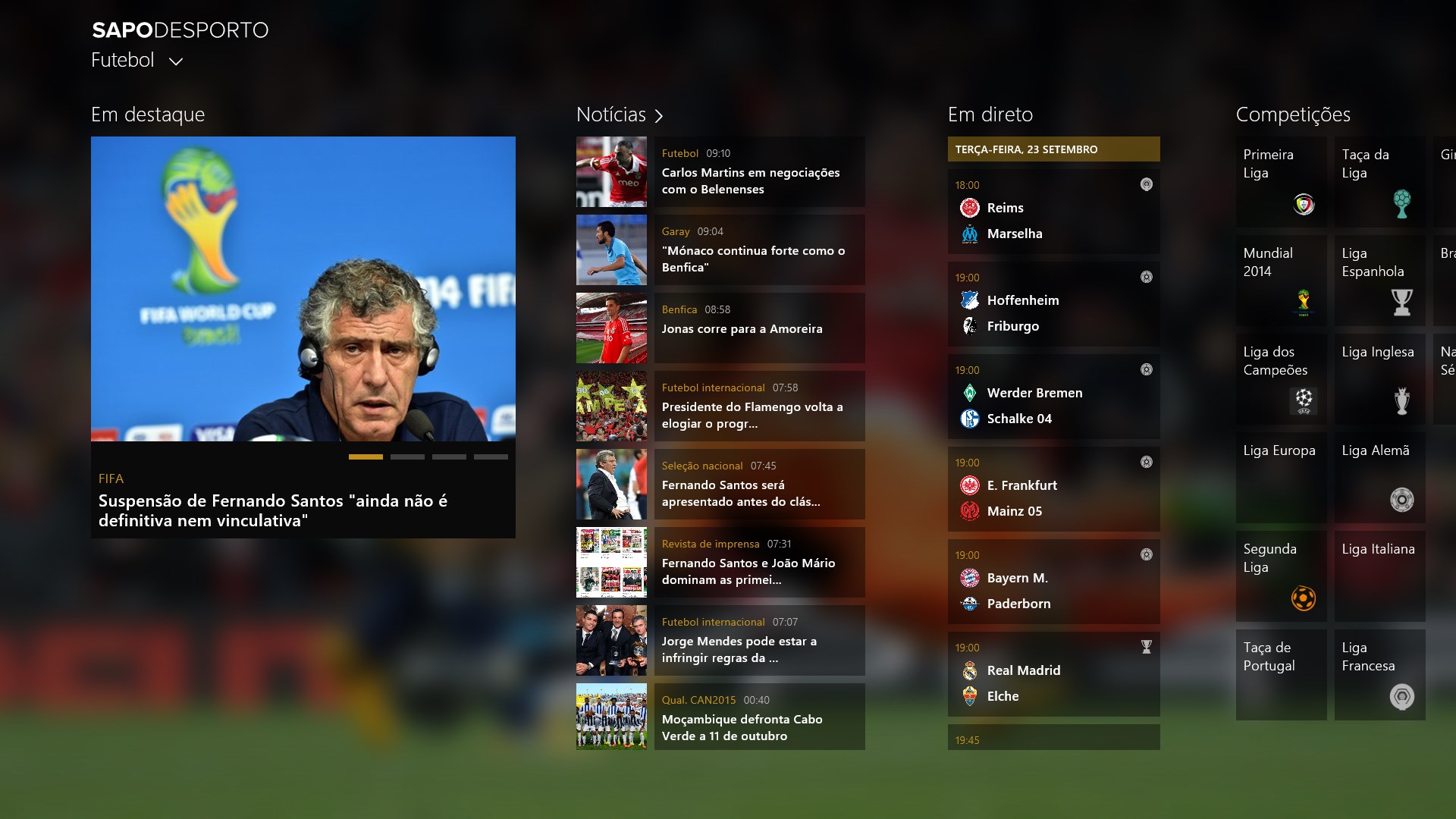 Download & install sapo desporto 7.1.0 app apk on android phones. Notícias, classificações, informações dos clubes e planteis, estatísticas e o calendário desportivo. A aplicação do sapo desporto permite acompanhar, em primeira mão, toda a atualidade desportiva, as classificações, estatísticas, informações dos clubes e planteis, e o calendário desportivo. Sapo desporto, um remate certeiro. 11,930 likes · 1,982 talking about this. Notícias, classificações, informações dos clubes e planteis. Acompanhe em primeira mão toda a atualidade desportiva: Acompanhe em primeira mo toda a atualidade desportiva: Sapo desporto, um remate certeiro. Galeriaseleções, desportos de inverno e ciclismo nas fotos da semana. Acompanhe em primeira mão toda a atualidade desportiva: Acompanhe em primeira mão toda a atualidade desportiva: Futebol, com resultados em tempo real, mas também atletismo, desportos motorizados, entre outros.